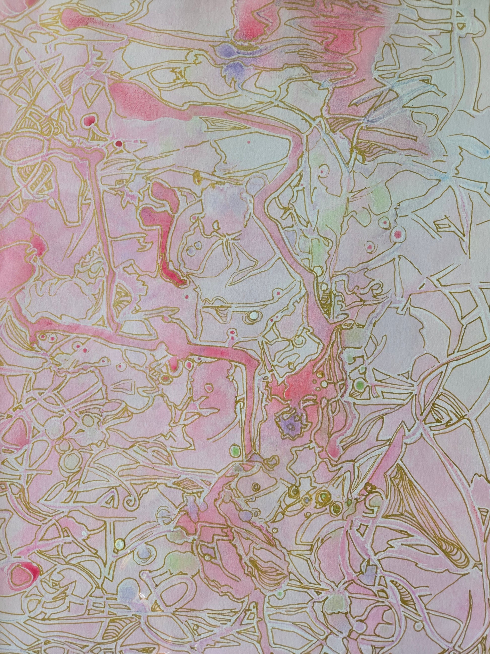 12 x 18 in. Original Mixed Media abstract painting on cold press watercolor paper.