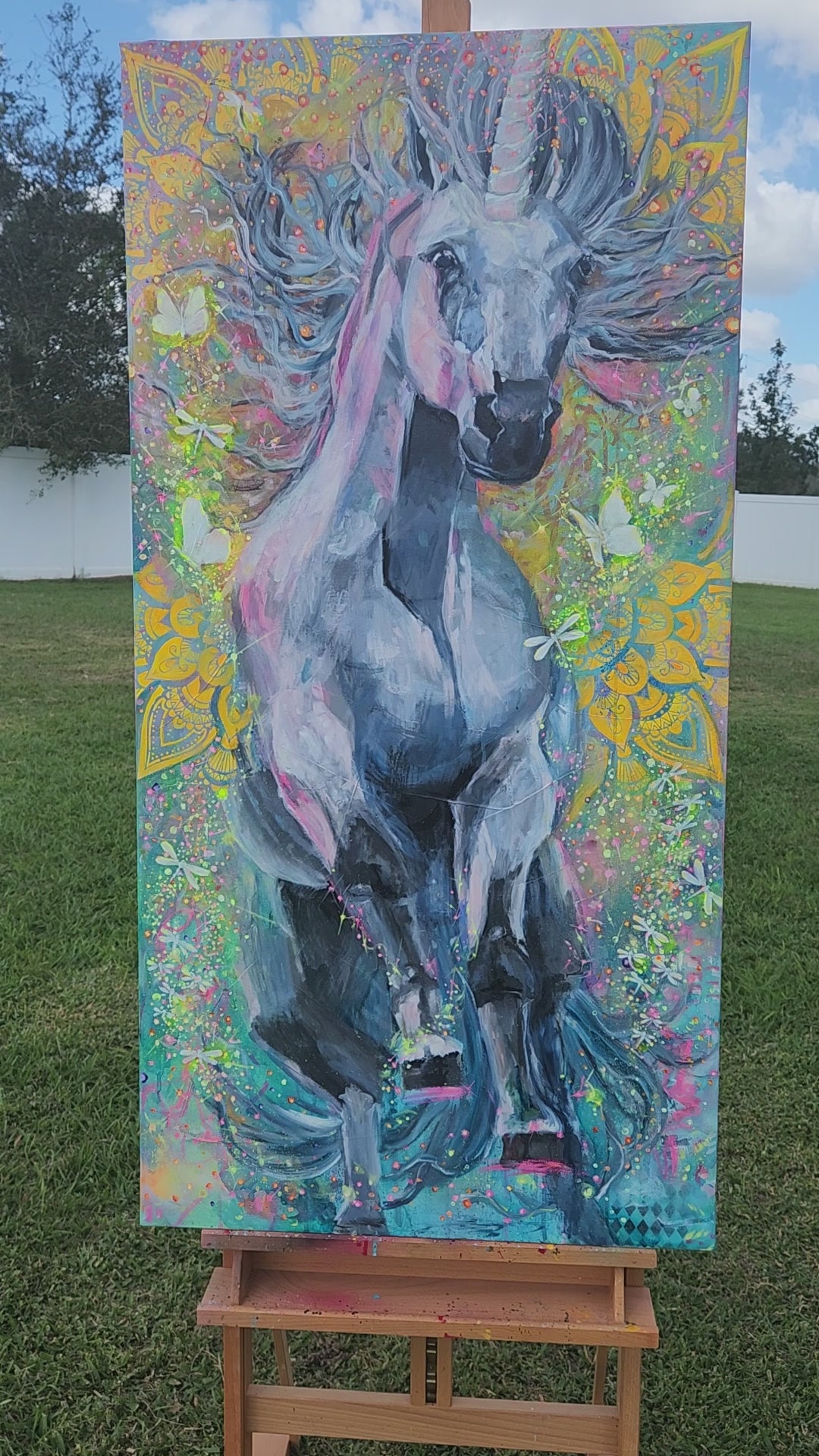 Medium: Mixed Media - I start with texture paste then add a layer of spray-paints, then Acrylics and finally Oil colors.