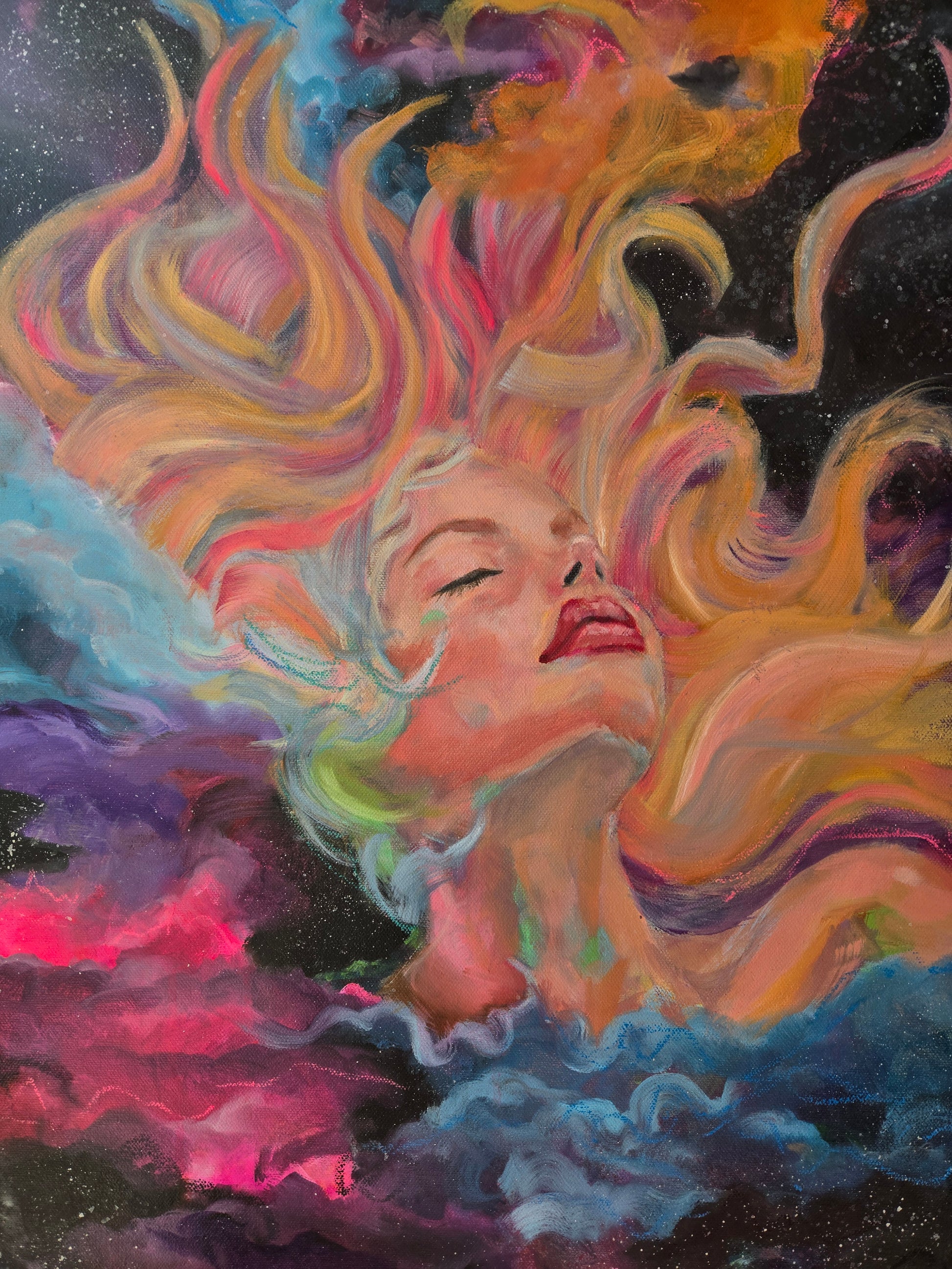 Asteria gave up her stars to escape Zeus and became earth bound. I often wonder if she ever missed being part of the cosmos. This is my interpretation of how she may have felt being a part of the cosmos.
